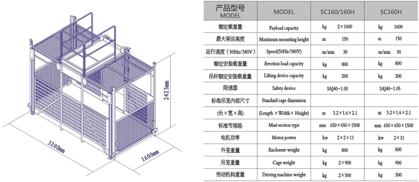 產(chǎn)品名稱:SC160/160H、SC160H系列施工升降機
