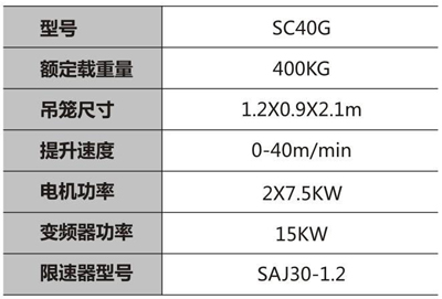 SC40G工業施工升降機: 1.用于塔吊、冷卻塔、煙囪、港口等建筑 2.采用雙電機保證使用安全性 3.不繡鋼吊籠結構,防腐耐用美觀