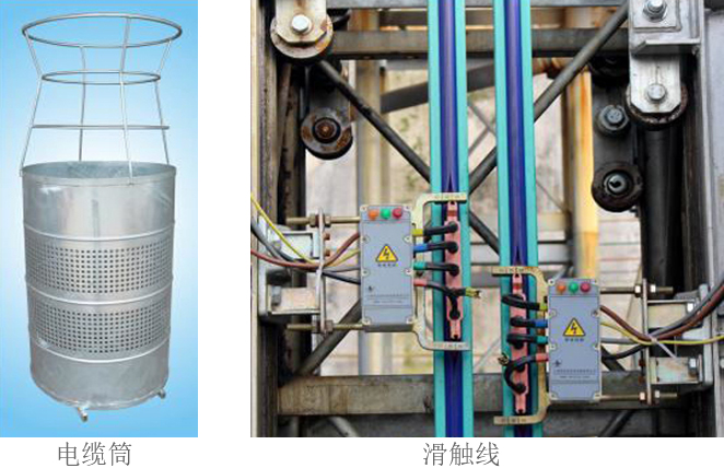 結構比較簡單,無專門的電纜導 向軌道,通常受風力影響較大,適 用風力較小或施工高度比較低
