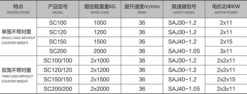 SC系列普通升降機(jī) 額定速度:36米/分鐘 SC系列普通施工升降機(jī)是我們公司其中一種產(chǎn)品,它具有直接啟動(dòng),結(jié)構(gòu)簡(jiǎn)單等優(yōu)點(diǎn),并且相對(duì)國內(nèi)同類產(chǎn)品它具有更明顯優(yōu)勢(shì): 1.吊籠結(jié)構(gòu)經(jīng)過優(yōu)化設(shè)計(jì)采用材質(zhì)和性能更高的鋼材在保證吊籠強(qiáng)度同時(shí),吊籠重量減輕了百分之十,降低能耗。 2.籠內(nèi)裝飾(電箱、照明燈、操作臺(tái))政進(jìn)使得籠內(nèi)可利用空間增大,和明效果更好電梯操作更人性化。 3.籠內(nèi)固板采用新工藝的沖孔鋼板或選用沖孔鋁板(加厚型),不僅滿足防銹效果同時(shí)強(qiáng)度也有很大提升,使吊籠更堅(jiān)翻耐用。 4.吊籠頂護(hù)期板與籠頂圍欄結(jié)合,使拆卸嚼欄后,吊籠總體高度降低在限高的運(yùn)輸中,吊籠運(yùn)輸更方便。 5.吊籠門滑道改進(jìn),使裸露在外的門配重包裹安全性、美觀性提升不少。