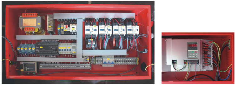 電氣控制箱與電氣主體箱構成的控制系統,分開獨立的電箱使吊籠布局更合理,吊籠可利用空間更大,電氣功能劃分更明確。